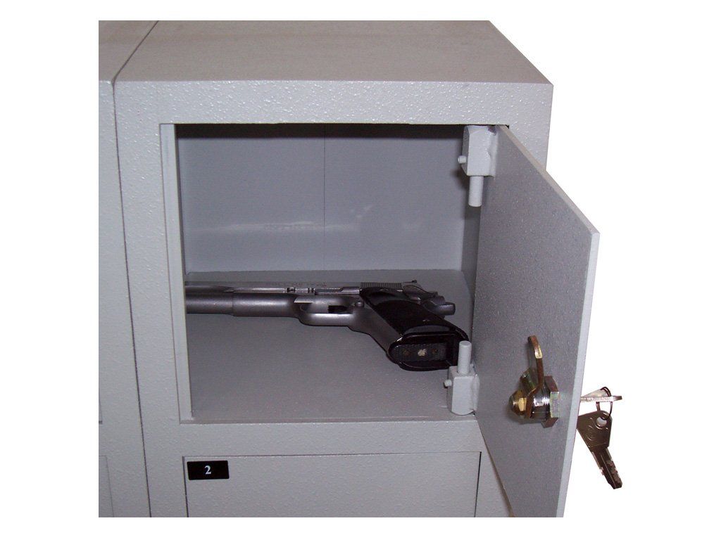 Ook waar het gaat om pistoolkolommen, bij uitstek geschikt voor het opbergen van dienstpistolen en het bijbehorende koppel, geldt dat wij alle pistoolkluizen zelf produceren en u dus zelf kunt bepalen uit hoeveel vakken een kolom bestaat. Koppeling van kolommen behoort natuurlijk tot de mogelijkheden.